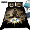 Mandala Buddha Duvet Cover Set,Bohemian Bedding Set Golden Black Lotus Flowers Print Luxury Microfiber Polyester Comforter Cover — buy online with free worldwide shipping!
