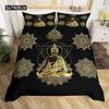 Mandala Buddha Duvet Cover Set,Bohemian Bedding Set Golden Black Lotus Flowers Print Luxury Microfiber Polyester Comforter Cover