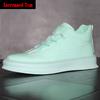 Men Casual Leather Boots Trend Green White Men's Inner Height Increase Shoes Youth Street Style Platform Boot Short Ankle Shoes