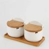 Japanese Style Ceramic Seasoning Jar Set Wood Lid Bamboo Tray Base Spice Jar with Spoon Home Sugar Salt Spices Storage Container