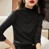 Lace Base Shirt for Women's Autumn Fashion Half High Neck Long Sleeved Mesh Base Top
