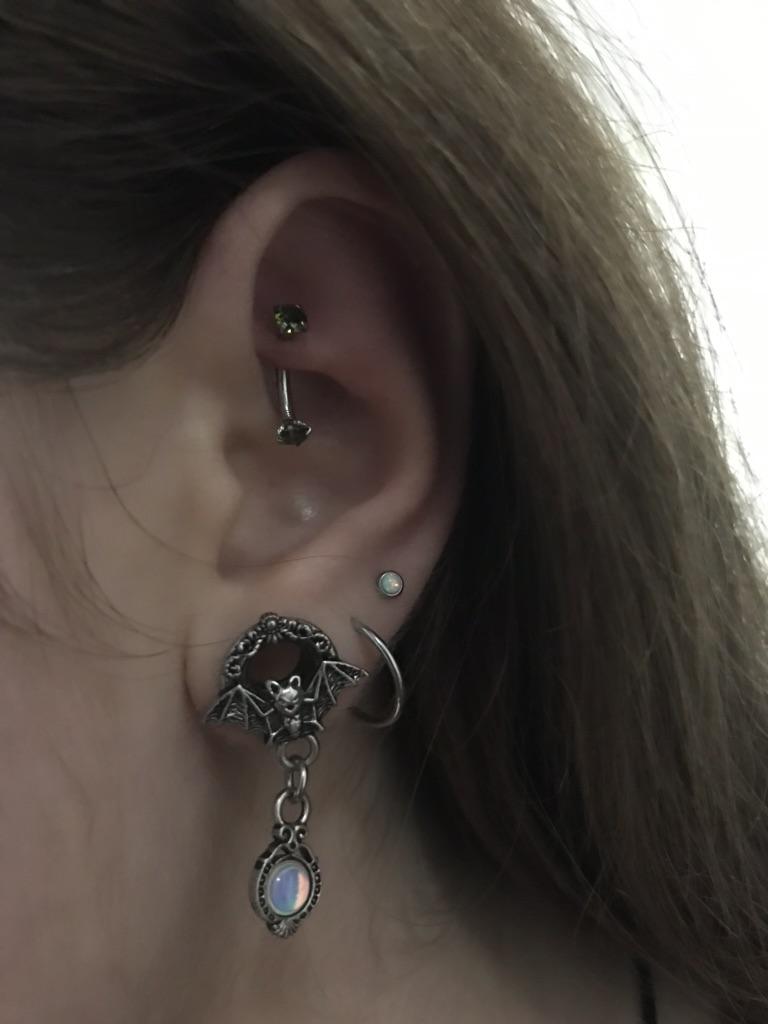 Alisouy 2PCS Stainless Steel Bat Round Opal Pendant Ear Tunnels Plugs Expander Stretcher Gauge Earrings Piercing Body Jewelry