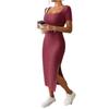 2023 European and American New Independent Station Amazon Hot French Square Collar Side Split Rib Knitted Short-sleeved Dress