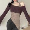 Y2k Off Shoulder Knitted Women T-shirts Set Sexy Korean Style Asymmetric Halter Tops Gyaru Crop Long Sleeve Autumn Tees — buy online with free worldwide shipping!