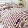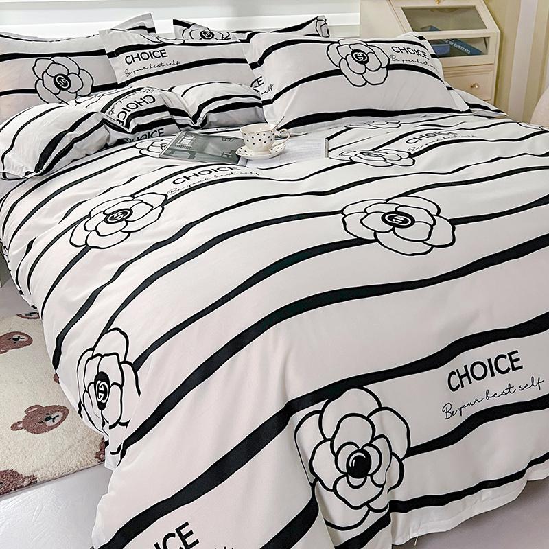 White Flower Stripes Duvet Cover Set with Bed Sheet Pillowcases Popular Reactive Print Bedding Sets Twin Full Queen King Size