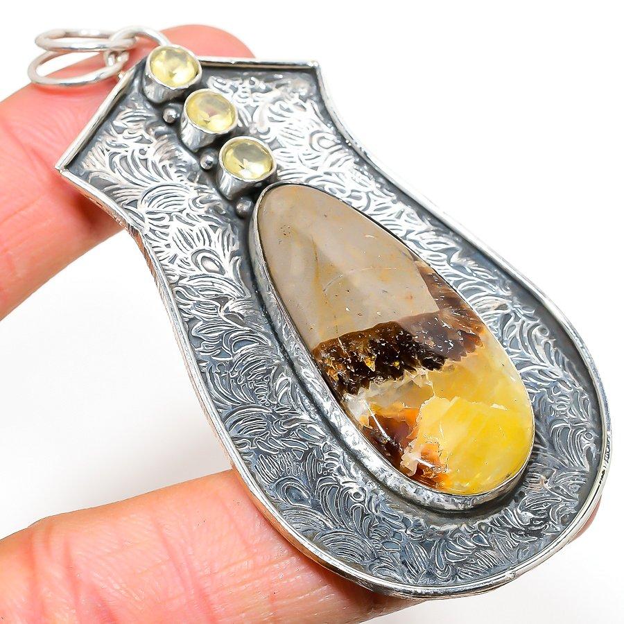 Septerian Stone, Citrine 925 Sterling Silver Jewelry Pendant 3.27" N2Z79