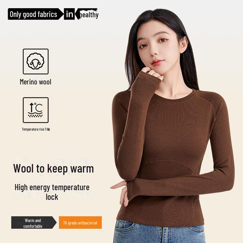 Women's Merino Wool Velvet Bottoming Shirt - Antibacterial Autumn Top