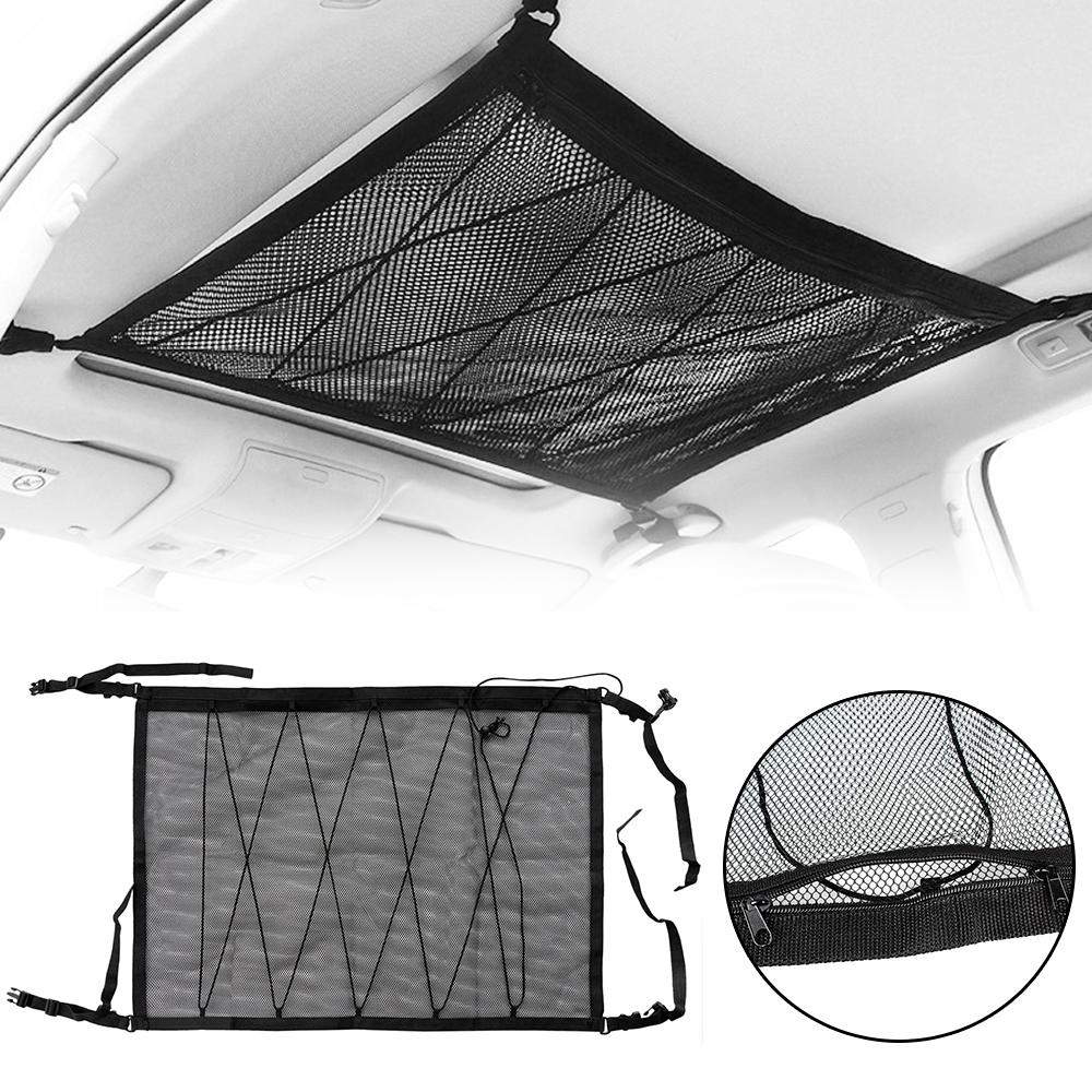 High quality mesh material with good breathability and durability. The items stored are clear at a glance and easy to pick up.The double-layer zipper design can store large and light items such as clothes, pillows, blankets, plush toys, etc. It can protect items from falling and save space.The storage net pocket is safe to use, and you can adjust its length according to the width of the roof.Small and portable, easy to install.Wide Application, the storage bag can also be used as a storage bag in the trunk. And it is very suitable for outdoor use. And the storage bag is suitable for any model such as van, SUV and so on.