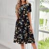 Women's Loose Casual And Fashionable Round Neck Short Sleeved Printed Mid Length Dress