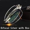 Fashion Bifocal Reading Glasses with Glasses Box Metal Lightweight Presbyopia for Men Women New Fashion Anti-blue Near Far Eyeglasses