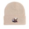 White Head Badger Print Knitted Cap Beanie, Animal Skull Cap Cuff Fit Stylish Bobble Hat Knit Hat Beanie