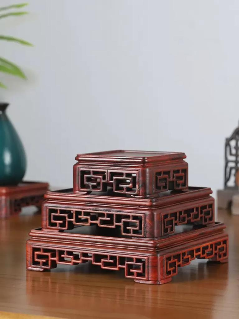 Red Sandalwood Incense Burner, Teapot Stone, Seal Base, Solid Wood Vase, Bonsai Buddha Wood Carving, Rectangular Bracket