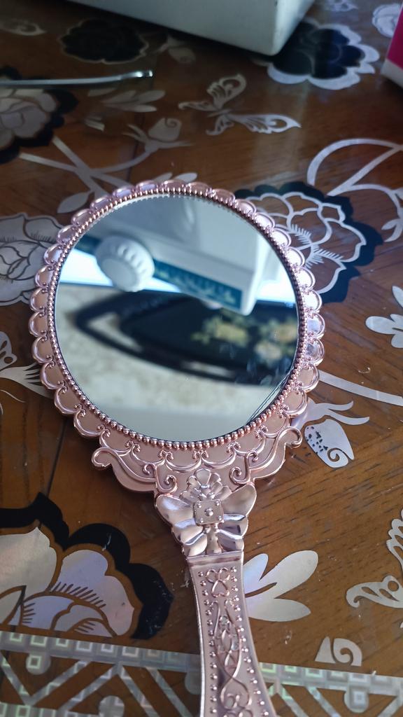 Vintage Patterned Handheld Makeup Mirror Hand Hold Oval Round Mirror Noble Restore Ancient Ways Court Mirror Beauty Tool