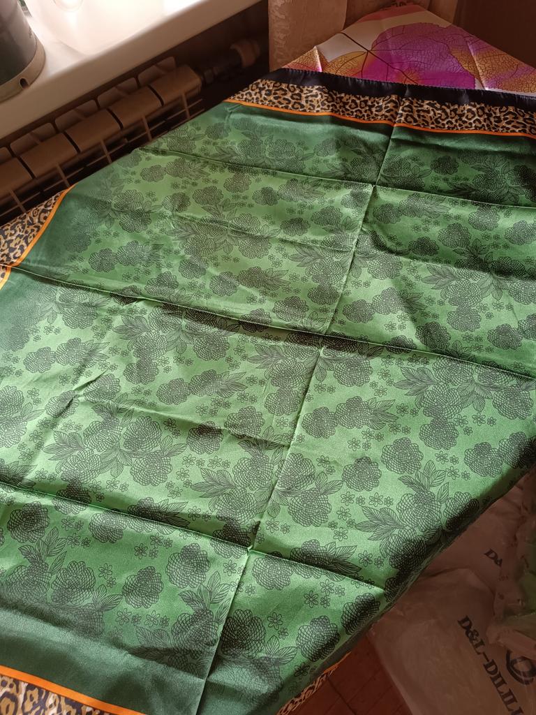 Temperament Silk Scarf Women, New Silk Scarf Thin Section, 90cm Fashion Jacquard Green Leopard Print Shawl Silk Scarf — buy online with free worldwide shipping!