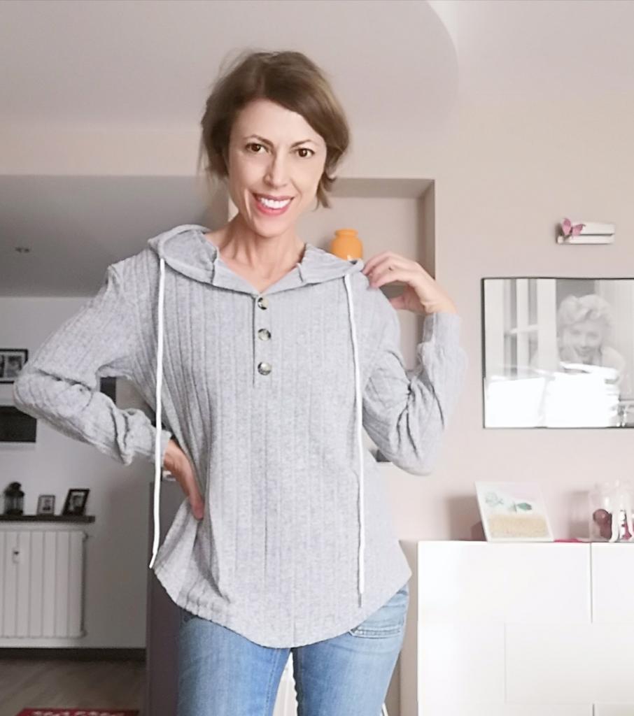 HOODIE Super knit plush 🤩 The sweatshirt arrived in Italy in 15 days with tracked shipping, packaged in a transparent zip bag. Super fast shipping. The sweatshirt is very beautiful, Hood with drawstring and 3 buttons . The sleeves have an elastic cuff, straight line slightly rounded elastic. Soft fit . Oversized model, the sleeves are not short. Tall girls can order it easily. The fabric is of good thickness, no smell, the seams are perfect. No dangling threads. There is the label indicating the fabric composition. Composition polyester and elastane. Inside the fabric is not plush. This makes the sweatshirt suitable for the autumn season Recommended purchase!!!! 👌👌👌