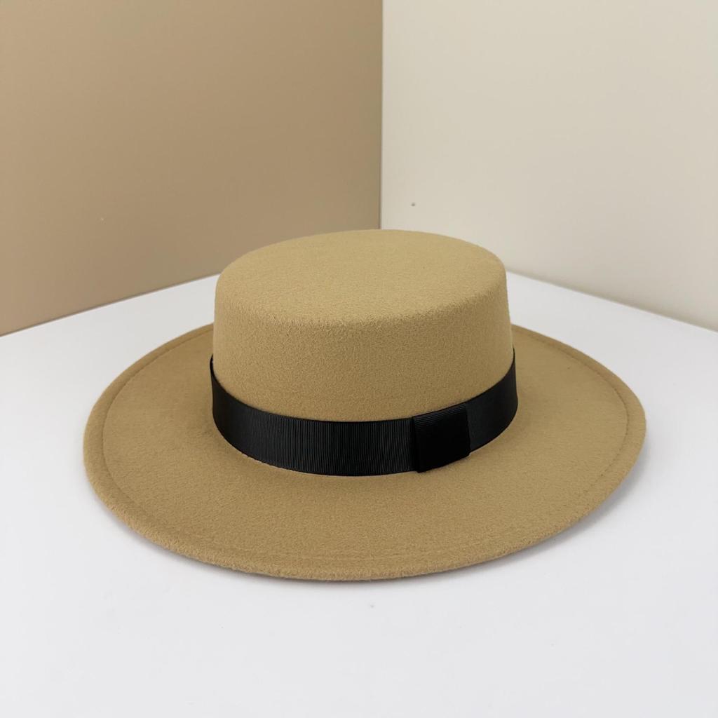Top Hat British Black Flat Top Hat Hepburn Gentleman Jazz Hat Flat Brim Woolen Wide Brim Men'S And Women'S Hats