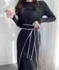 Fashion Autumn/Winter Retro Half High Neck Slim Fit Temperament Colored Mid Length Strap Knitted Elegant Dress for Women