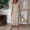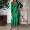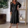 Women's Fashionable Solid Color V Neck Long Sleeved Sexy Jumpsuit A Line Long Dress