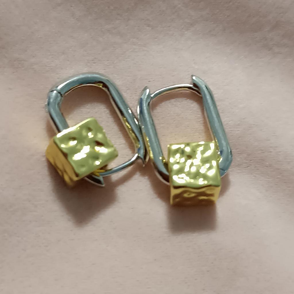 ANENJERY Golden Silvery Contrasting Geometric Texture Square Hoop Earrings for Women Exquisite Fashionable Party Jewelry Gifts — buy online with free worldwide shipping!