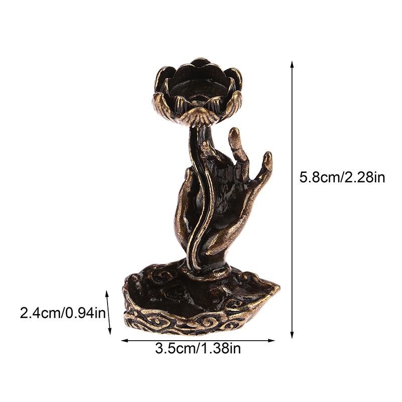 1Pc Vintage Buddha Hand Lotus Incense Burner Metal Backflow Incense Holder For Home Room Creative Tea Table Decor