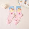Women's Cute Anime Cartoon Combed Cotton Socks - Korean Style, Colorful Mid-Length