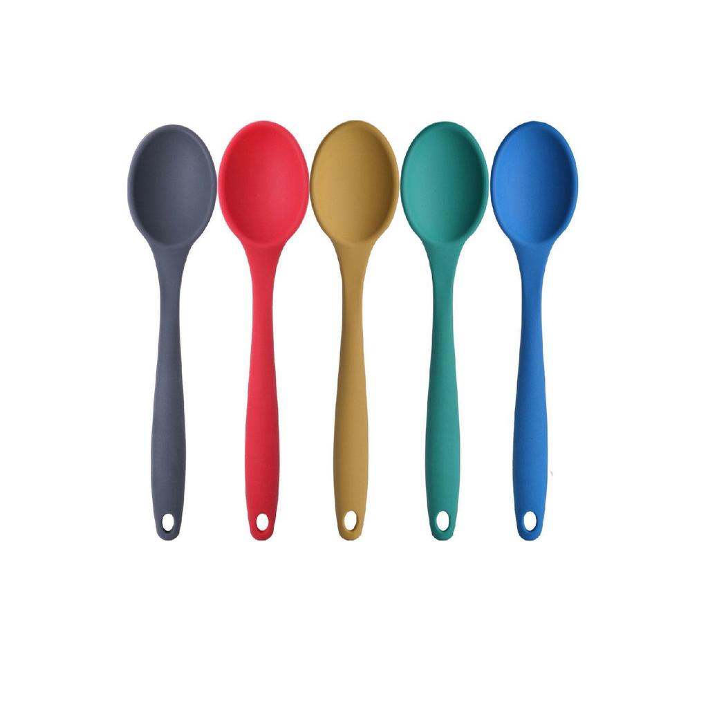 Large Size Fireproof Non-stick Silicone Spoon Set 5 Pieces Silicone Spoon Anthracite Red Yellow Green Blue