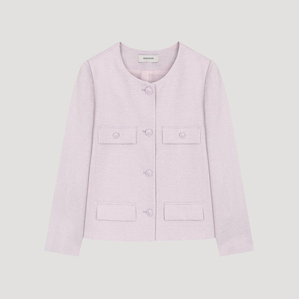 The Shezmic Round Neck Crop Tweed Jacket is the epitome of modern elegance combined with a touch of classic charm. This jacket is crafted in a light violet hue, ideal for adding a subtle pop of color to your wardrobe. Designed for the contemporary woman, it features a classic round neck and a stylish cropped cut, perfect for pairing with both formal and casual outfits.