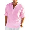 Large Size Men's Spring and Summer Buttoned Top Long Sleeve T-Shirt Solid Loose Fit Linen Shirt