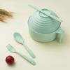 Wheat Straw Multifunctional with Lid Bowl Spoon Fork Chopsticks Eating Dinnerware Set Anti-hot Bowl Microwavable Bowl