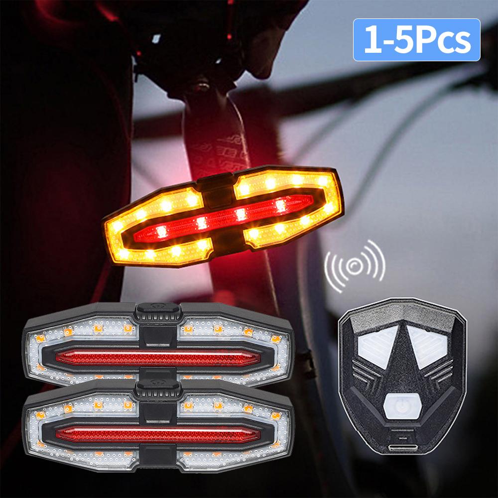 1-5Pcs Bike Tail Light Rechargeable Cycling Back Light with Turn Signals Wireless Remote Control Warning Cycling Light for Night