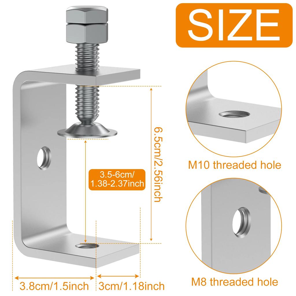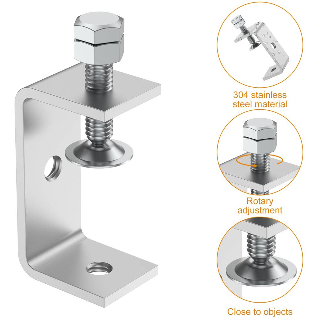 2Pcs C-Clamp 304 Stainless Steel Tiger Clamps 65mm Heavy Duty Welding Clamp with Wide Jaw Openings Durable Woodworking Clamp for