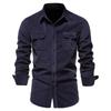 Single Breasted Cotton Men's Shirt Business Casual Fashion Solid Color Corduroy Men Shirts Autumn Slim Shirt