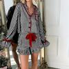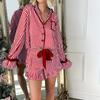Striped Loungewear Christmas Pajamas Shorts Set Women Cute Bow Tie Pjs Button Up Shirt+Ruffle Shorts 2 Piece Sleepwear — buy online with free worldwide shipping!