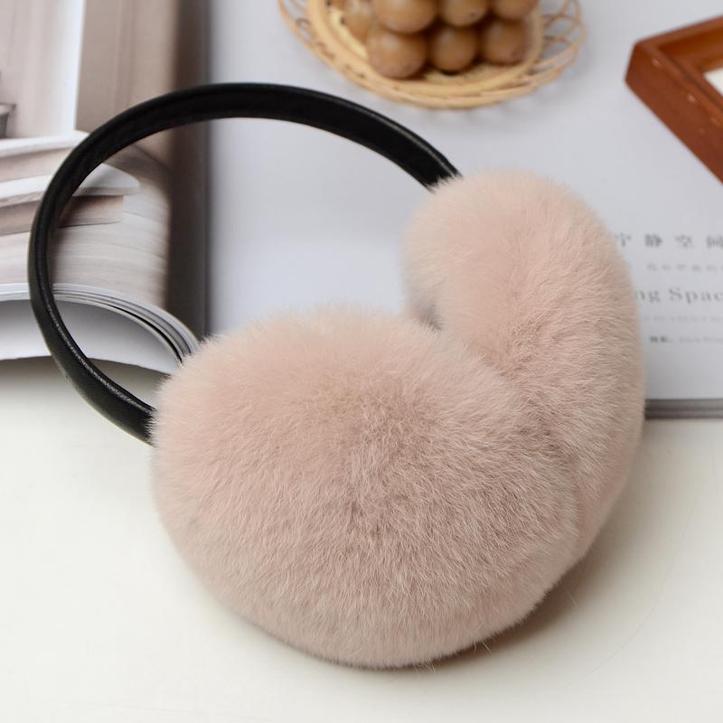 Rex Rabbit Fur Earmuffs for Women's Autumn and Winter Warmth Earmuffs and Ear Wraps Simple and Genuine Fur Ear Cover Ear Warmth