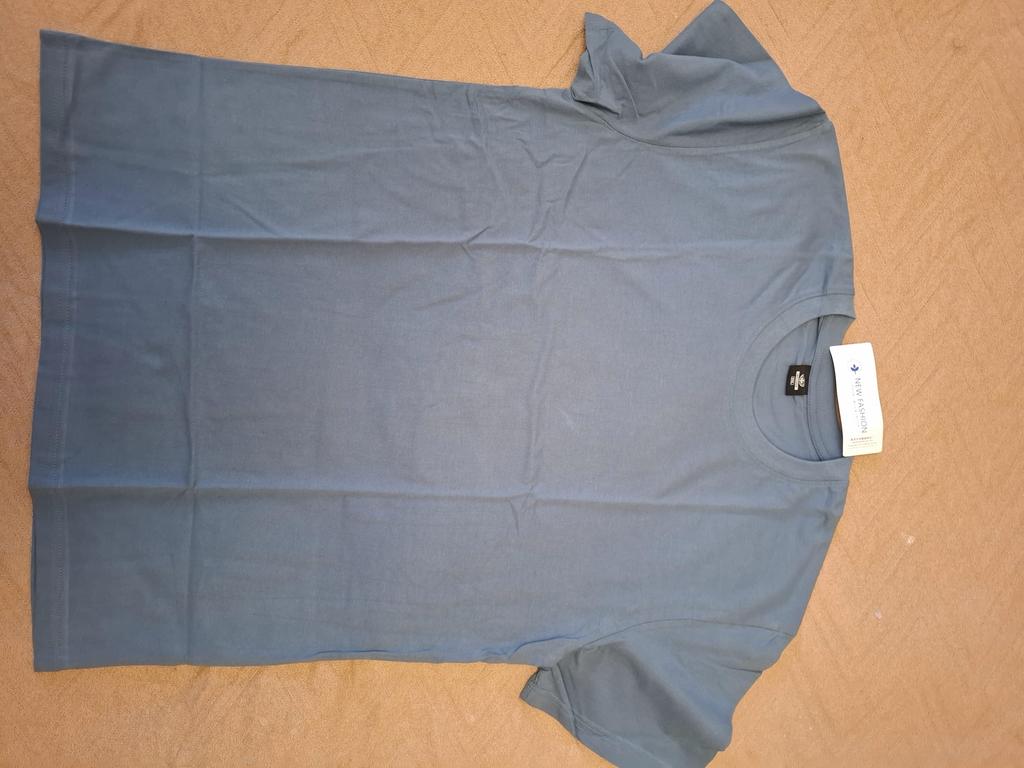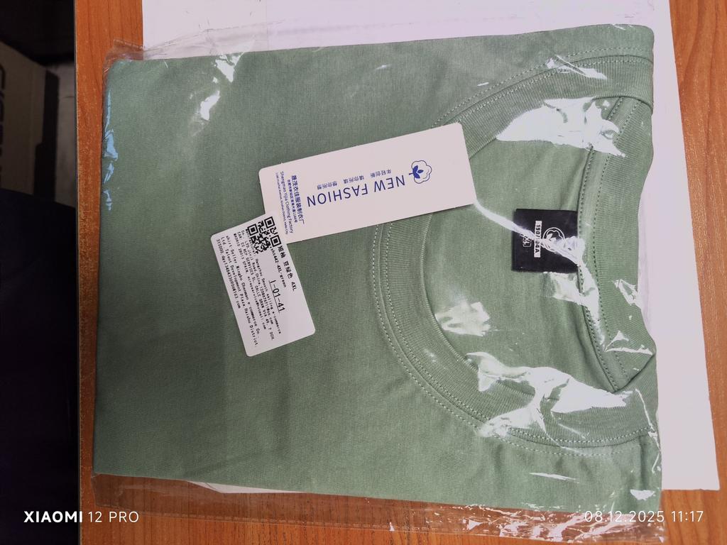 Same story as with the red t-shirt. Very large neckline! Well, really, it turns out like a woman's décolleté! I didn't like that. The quality of the material is good, it's cotton, the seams are neat. The size is normal.