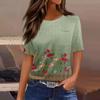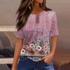 T Shirts For Women Pleated Round Neck Dressy Casual Blouses Printing Short Sleeve Summer Tops Loose Fit