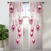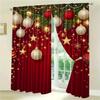 2PCS Merry Christmas Red New Year Gold Ball White Snowflake Light Filtering Curtains for Living Room Bedroom Window Drape Decor