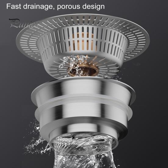 Featuring a large drainage hole layout for enhanced efficiency, this sink filter ensures rapid water flow, saving time and energy. The multi-layer rubber gasket system effectively combats sewer odors, backflow issues, and leaks for a hygienic kitchen environment.