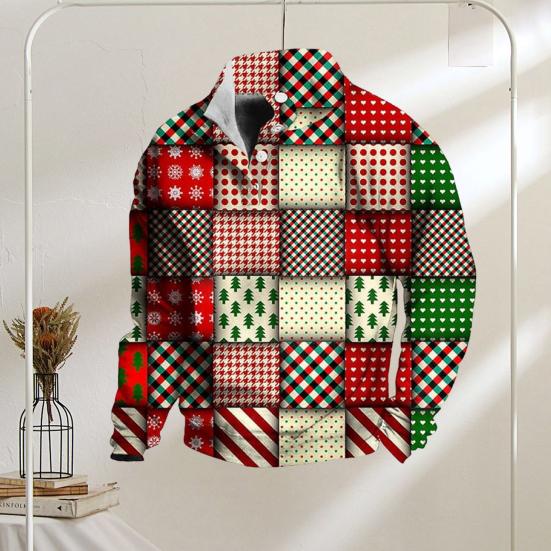Design: Featuring a stylish stand-up collar and half-open buttons, this men's top showcases intricate Christmas-themed digital print decorations that add a festive touch to your wardrobe. The unique 3D printing technology ensures each piece is one-of-a-kind.