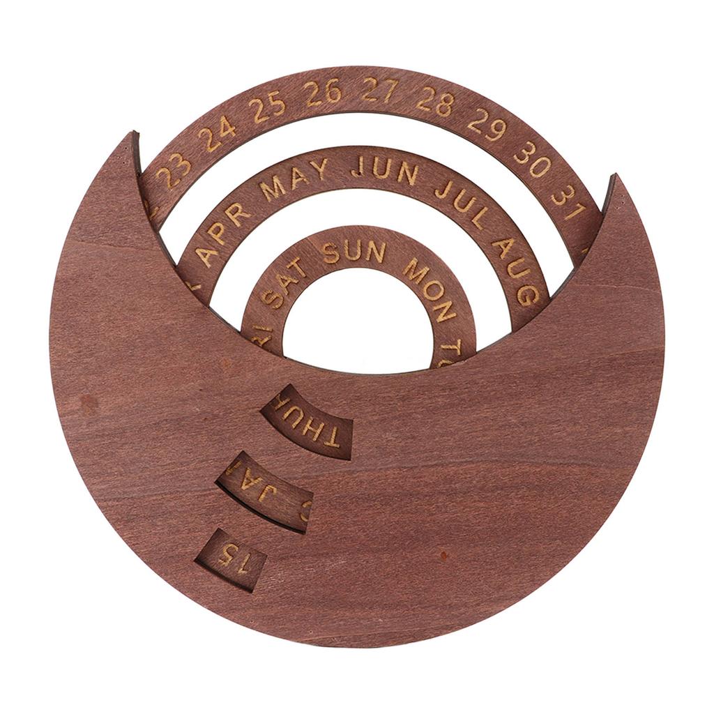 Wooden Disc Calendar Dark Brown Rotatable Disc Natural Wood Vintage Style Wooden Perpetual Calendar — buy online with free worldwide shipping!