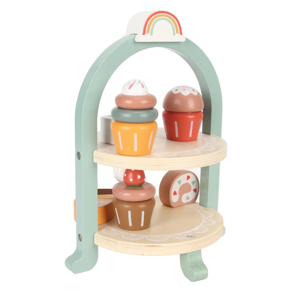 Wooden Afternoon Tea Toys Cake and Pastry Tower Toy Two Tier Dessert Treats Toys for Parent — buy online with free worldwide shipping!