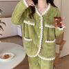 French Style Coral Velvet Pajamas Women's Autumn And Winter Cardigan Long Sleeved Flannel two-Piece Pajamas Suit