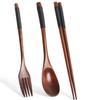 Non-Slip Wood Dinnerware Long Handle Spoon Chopsticks Fork Set Japanese Style Ramen Tableware Set for Home Kitchen Cutlery Set