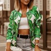 Fashion Women's Printed Long Sleeve Bomber Jacket Retro Zip Top Slim Basic Ladies Jacket