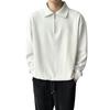 Men Fall Spring Top Half Zipper Turn-down Collar Corduroy Loose Vertical Striped Solid Color Long Sleeves Pullover Office Shirt for Commuting School