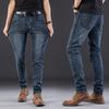 Winter Men's Elastic Jeans Thick Straight Loose Large Size Thickened Elastic Men's Trousers — buy online with free worldwide shipping!
