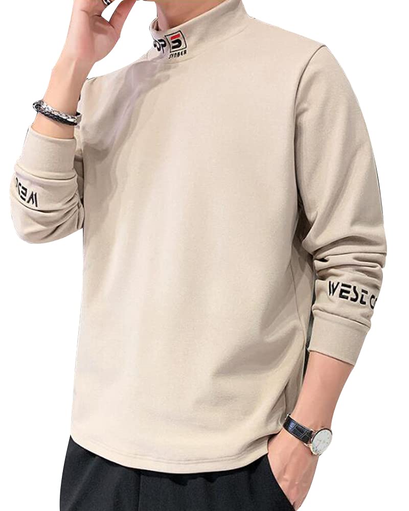 Cut and Sew High Neck Round Long Autumn Large [foveitaa] Men's T-Shirt, Tee-Shirt, Sweater, Neck, Sleeve, Thick, Loose, Plain, Simple, Clothes, Size,