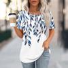 T Shirts For Women Pleated Round Neck Dressy Casual Blouses Printing Short Sleeve Summer Tops Loose Fit