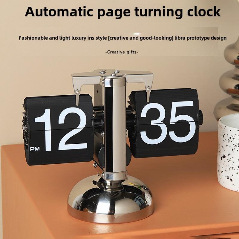 Metal Small Balance Automatic Page-turning Clock for Living Room Retro Simple Home Desktop Single-leg Clock Face Digital Clock