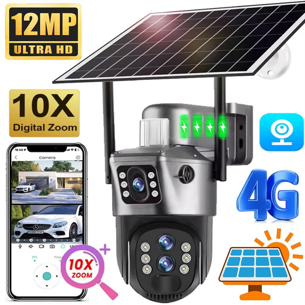 1. 6K Three lens dual-screen 4G solar powered battery PTZ camera